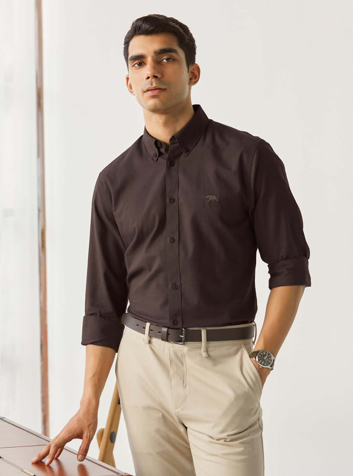 Elevate your formal wardrobe with the rich and sophisticated Dark Umber Shirt, designed for men who appreciate timeless elegance and impeccable craftsmanship. The deep umber shade adds a warm, earthy tone to your outfit, making it an ideal choice for business meetings, formal events, or any occasion where a polished appearance is essential. This shirt blends classic style with modern tailoring to provide a sharp, confident look.