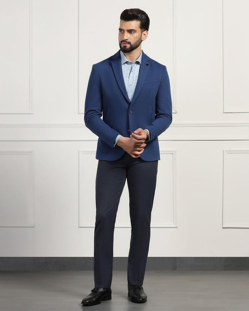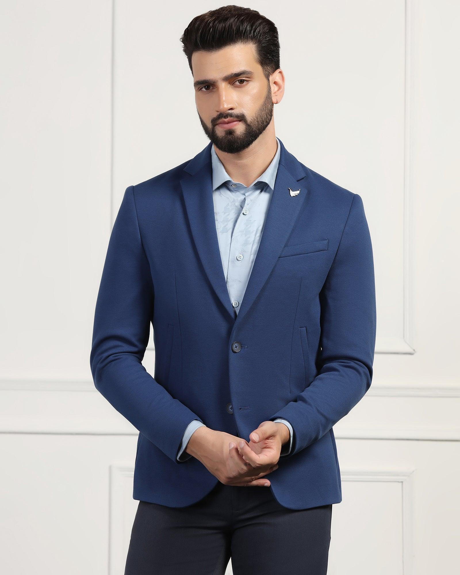 Pair the Formal Navy Textured Blazer – Elevate with crisp dress shirts, tailored trousers, or even dark denim for a versatile, sharp look. Its rich navy tone pairs effortlessly with a variety of colors, allowing you to experiment with different styles for work or social occasions. Embrace Karma Kaizen’s dedication to quality craftsmanship with this blazer that promises both style and longevity.