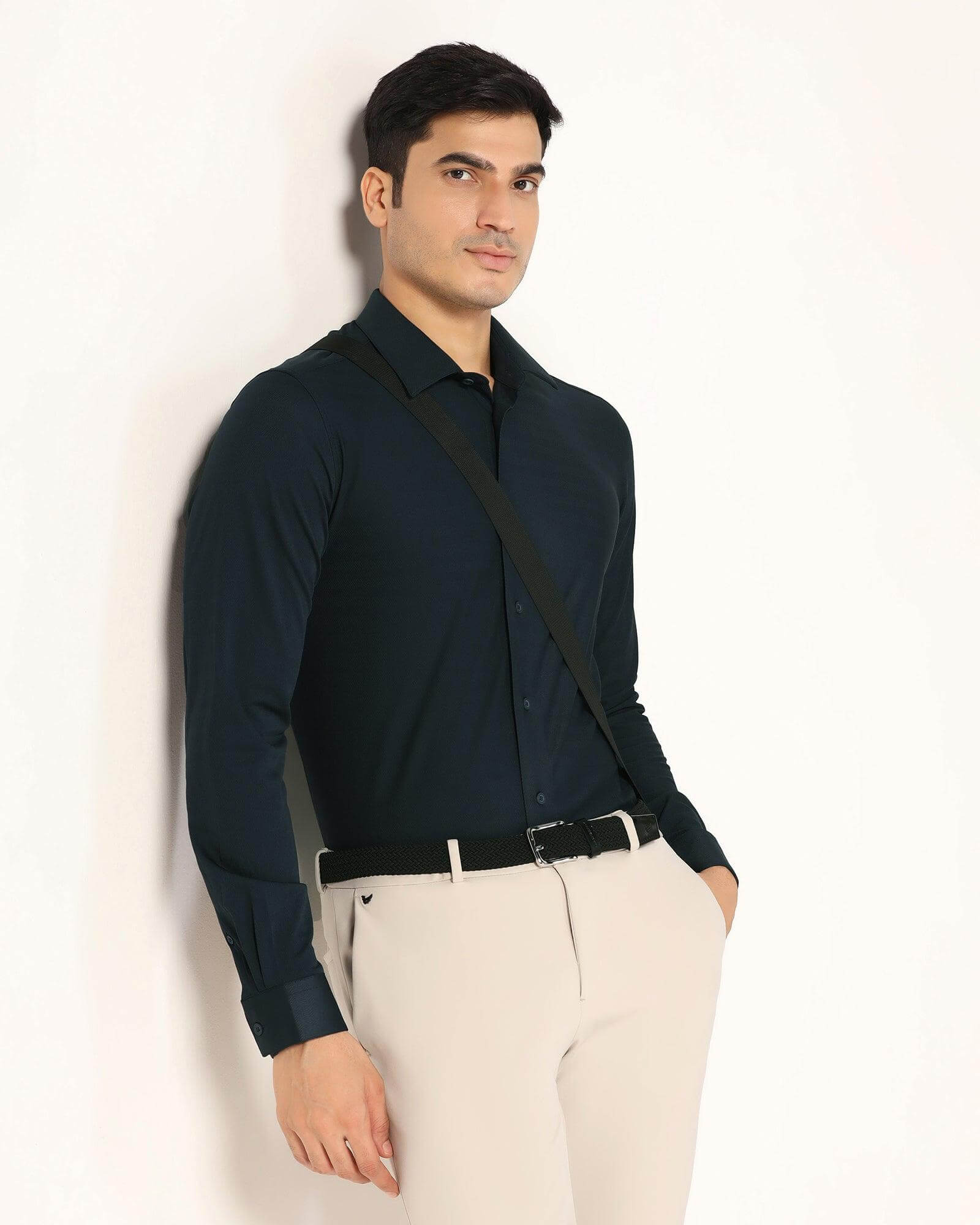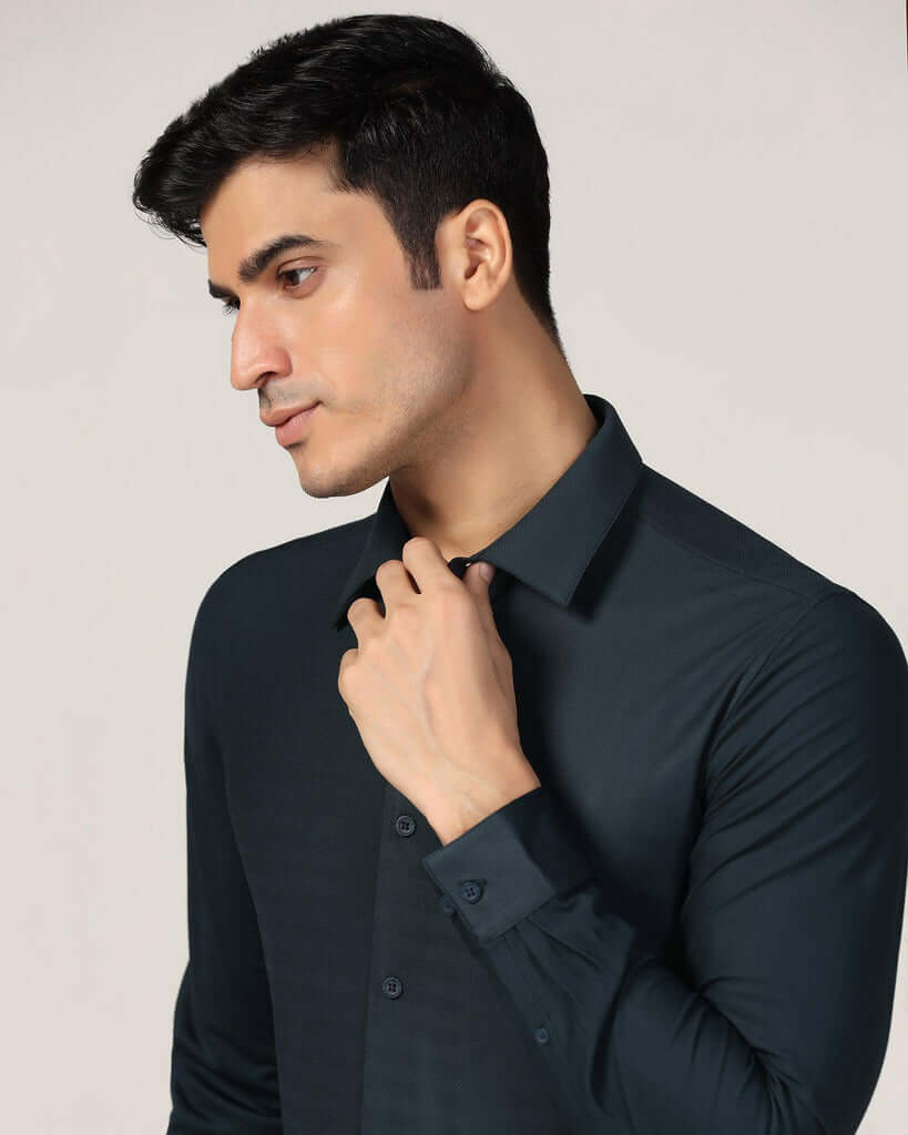 Crafted from high-quality cotton blend fabric, the Formal Teal Stripe Shirt ensures breathability and durability for all-day comfort. The tailored fit contours the body for a sleek silhouette while allowing freedom of movement, making it suitable for long workdays and important occasions. With full sleeves, a structured collar, and buttoned cuffs, this shirt brings traditional formalwear details together with contemporary style.