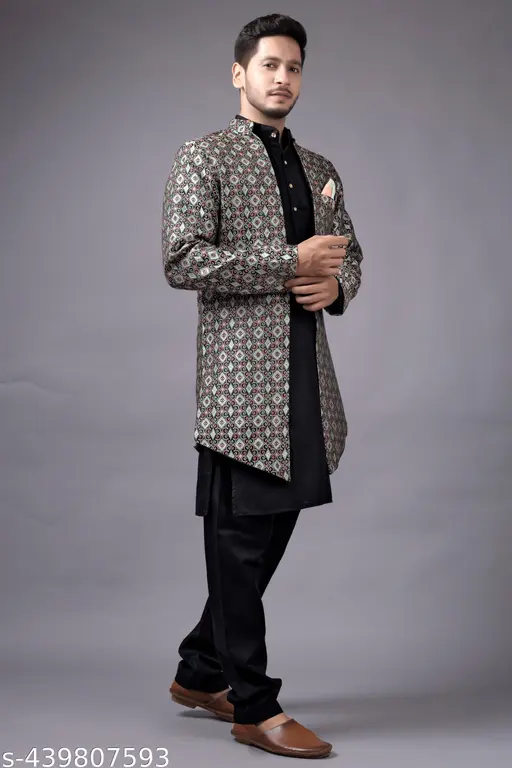 Crafted from premium cotton, the kurta and pajama provide breathable comfort ideal for long hours of wear. The relaxed yet tailored fit ensures you move freely while maintaining a polished silhouette. The accompanying waistcoat adds a sophisticated layer, featuring fine detailing and a structured design that enhances the overall ensemble. Together, they create a harmonious blend of classic and contemporary ethnic fashion.